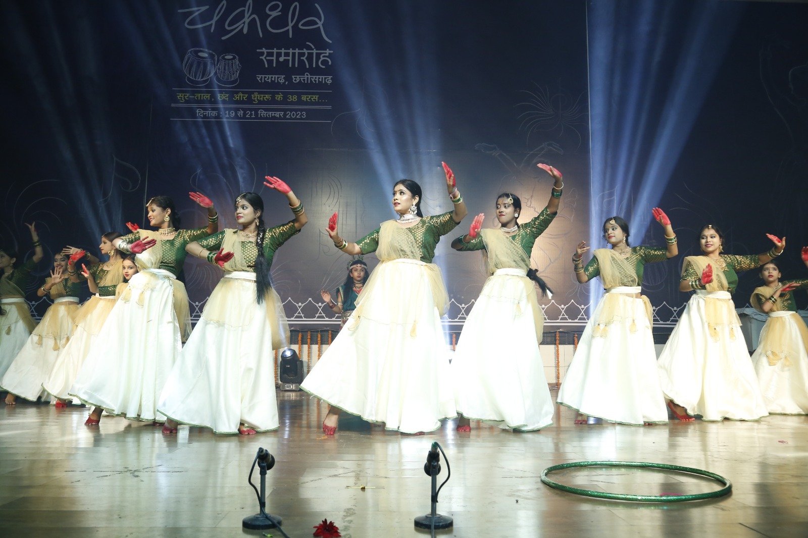 सामना:- रायगढ:- चक्रधर समारोह के समापन समारोह में छत्तीसगढ़ सहित शहर के स्थानीय कलाकारों ने मनमोहक प्रस्तुति दी। इस बार का चक्रधर समारोह खास रहा। तीन दिन के आयोजन में रिकॉर्ड एक हजार से अधिक कलाकारों की प्रस्तुति दी। स्थानीय प्रतिभाओं, बाल कलाकारों के साथ राष्ट्रीय एवं अंतर्राष्ट्रीय स्तर पर ख्याति बटोर चुके कला दिग्गजों ने समारोह में शिरकत की। इंदिरा कला संगीत विश्वविद्यालय खैरागढ़ के 60 कलाकारों के दल के अलग-अलग विधाओं में प्रस्तुतियां दी गई, जिसमें वादन, छत्तीसगढ़ के राज्य गीत अरपा पैरी के धार पर छात्र-छात्राओं ने खूबसूरत नृत्य के माध्यम से दर्शकों को सराबोर कर दी। नृत्य में संपूर्ण छत्तीसगढ़ की झलक दर्शकों को देखने की मिली।