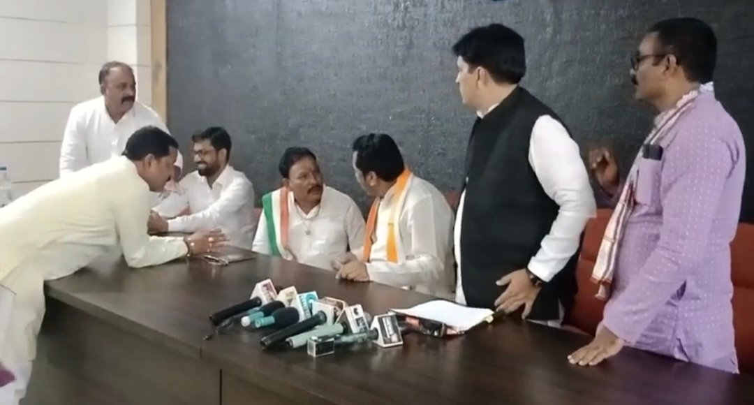 मुंगेली -प्रदेश मे चुनाव नजदीक है और प्रदेश भर मे कांग्रेस सरकार द्वारा महात्मा गाँधी जी के जयंती पर भरोसे की यात्रा कार्यक्रम को लेकर मुंगेली कांग्रेस प्रभारी अलोक सिंह ठाकुर के द्वारा रेस्ट हॉउस मे प्रेस वार्ता किया जा रहा था तभी नगर पालिका अध्यक्ष हेमेंद्र गोस्वामी लेट से पहुँचे जहाँ पहले से सामने कुर्सी मे बैठे मंडी अध्यक्ष आत्मा सिंह क्षत्रिय से सामने कुर्सी मे बैठने को लेकर प्रेस वार्ता के दौरान तू तू मे मे होने लगा और उन दोनों की लड़ाई कैमरे मे कैद हो गई। ज़ब उन लोगो को लगा की पत्रकारों के सामने विवाद हो रहा है तो तुरंत उन दोनों को शांत कराया तब तक उन दोनों की विवाद का विडिओ कैमरे मे कैद हो गई।