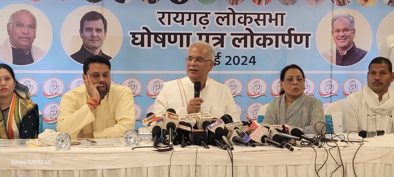 सामना:- रायगढ़:- कांग्रेस की ओर से रायगढ़ लोकसभा का घोषणा पत्र भूपेश बघेल पूर्व मुख्यमंत्री,रायगढ़ लोकसभा की कांग्रेस प्रत्याशी डाँ. मेतका देवी सिंह, कांग्रेस के वरिष्ठ जनप्रतिनिधिमण कार्यकर्ताओं की उपस्थिति में बुधवार 1 मई को जारी किया गया।