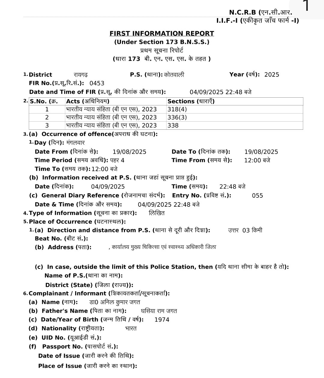 इसके बाद डॉ. जगत ने तत्काल कोतवाली थाने में शिकायत दर्ज कराई।FIR में उल्लेख है कि आरोपी ने कुटरचित आदेश तैयार कर विभाग को गुमराह किया और धोखाधड़ी की।