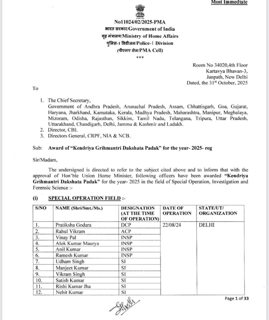 गृह मंत्रालय ने बताया कि चयन प्रक्रिया कड़े मानकों और तकनीकी मूल्यांकन पर आधारित रही। जिन अधिकारियों ने गंभीर अपराध जांच, नक्सल उन्मूलन अभियानों, साइबर/आर्थिक अपराधों की विवेचना और वैज्ञानिक जांच पद्धति के जरिए उल्लेखनीय सफलता प्राप्त की है, उन्हें सूची में शामिल किया गया है।