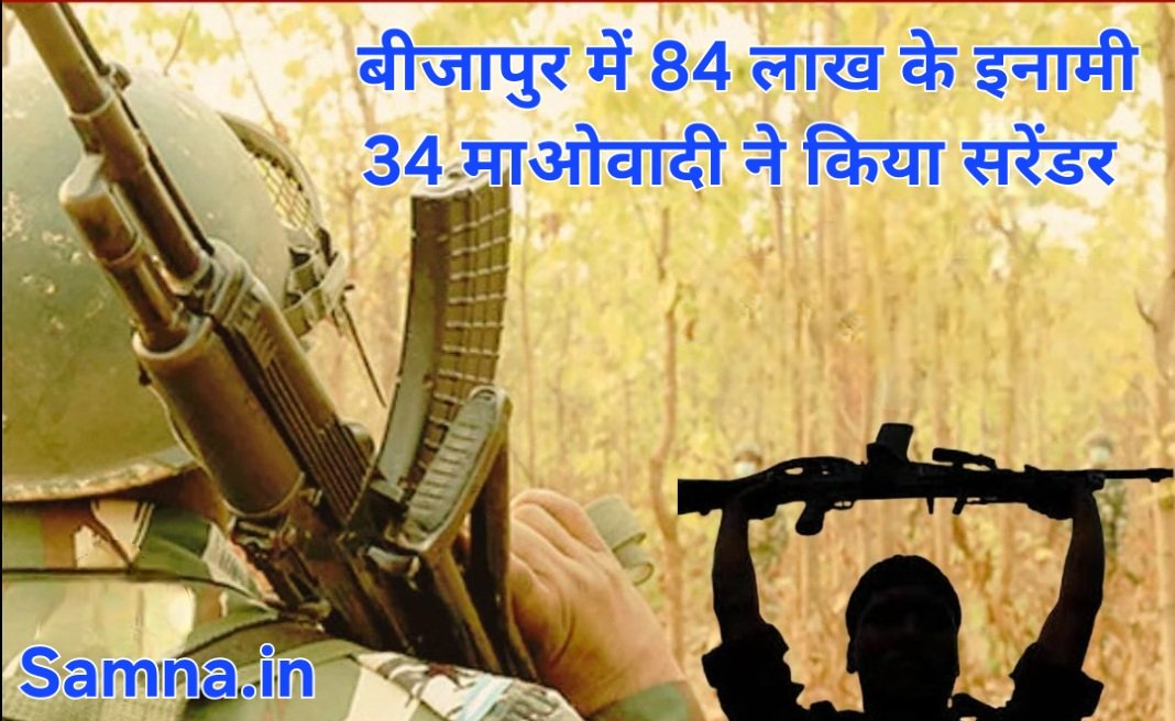 Samna.in छत्तीसगढ़ के बस्तर अंचल में शांति, विश्वास और विकास की दिशा में एक और महत्वपूर्ण सफलता मिली है। बीजापुर जिले में 84 लाख के इनामी 34 माओवादी कैडरों ने हिंसा का मार्ग त्यागते हुए भारतीय संविधान में आस्था जताई है और समाज की मुख्यधारा में लौटने का निर्णय लिया है।