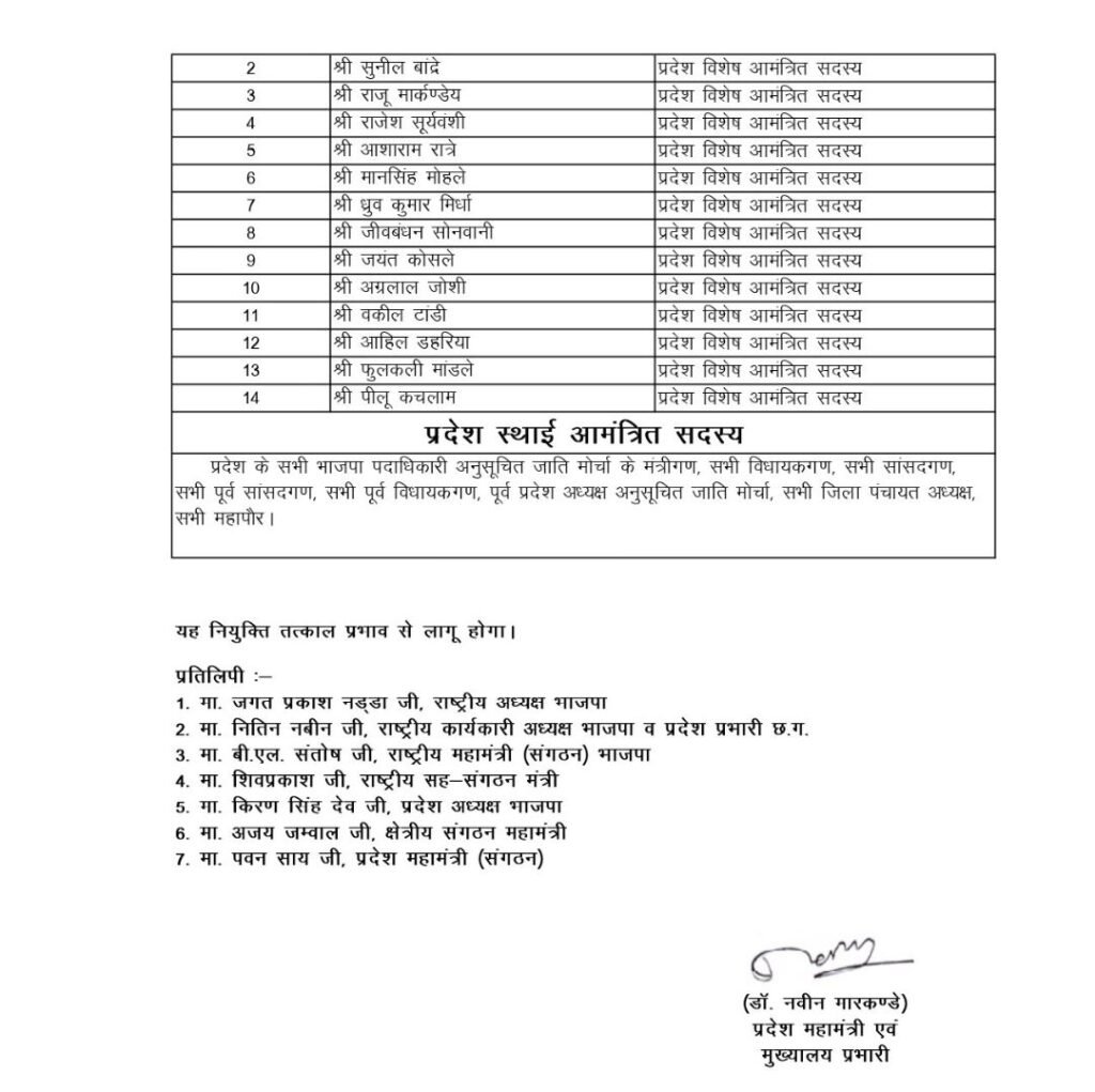 Samna.in छत्तीसगढ़ में भाजपा ने अनुसूचित जाति मोर्चा छत्तीसगढ़ की प्रदेश कार्यकारिणी,17 जिला अध्यक्षों और विशेष आमंत्रित सदस्यों की घोषणा कर दी है।