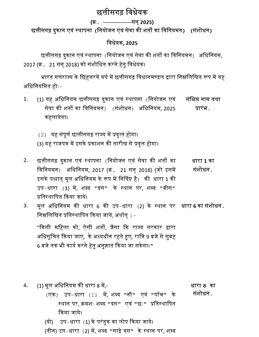 छत्तीसगढ़ दुकान एवं स्थापना संशोधन विधेयक पारित,महिलाएं कर सकेंगी नाइट शिफ्ट
