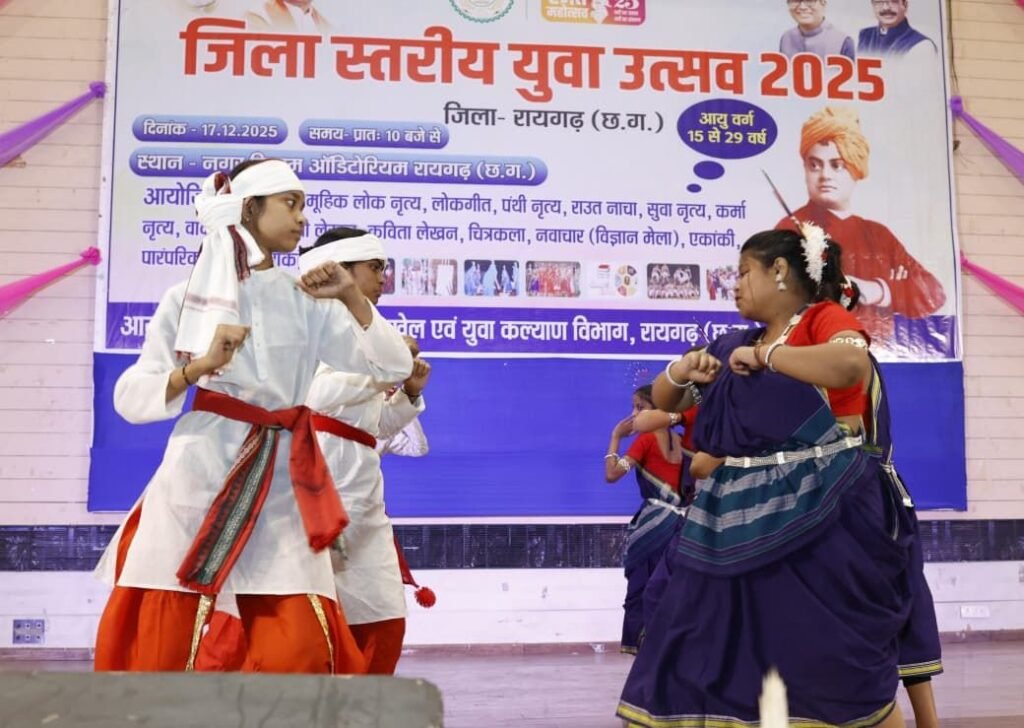 samna.in- Raigarh जिला स्तरीय युवा उत्सव का आयोजन नगर पालिक निगम ऑडिटोरियम रायगढ़ में उत्साह और उमंग के साथ सफलतापूर्वक संपन्न हुआ। इस आयोजन में घरघोड़ा के प्रतिभागियों ने जहां छत्तीसगढ़ की प्रसिद्ध लोकनृत्य पंथी नृत्य में प्रथम स्थान प्राप्त किया,वहीं पुसौर के प्रतिभागियों ने राऊत नाचा में उत्कृष्ट प्रदर्शन किया।