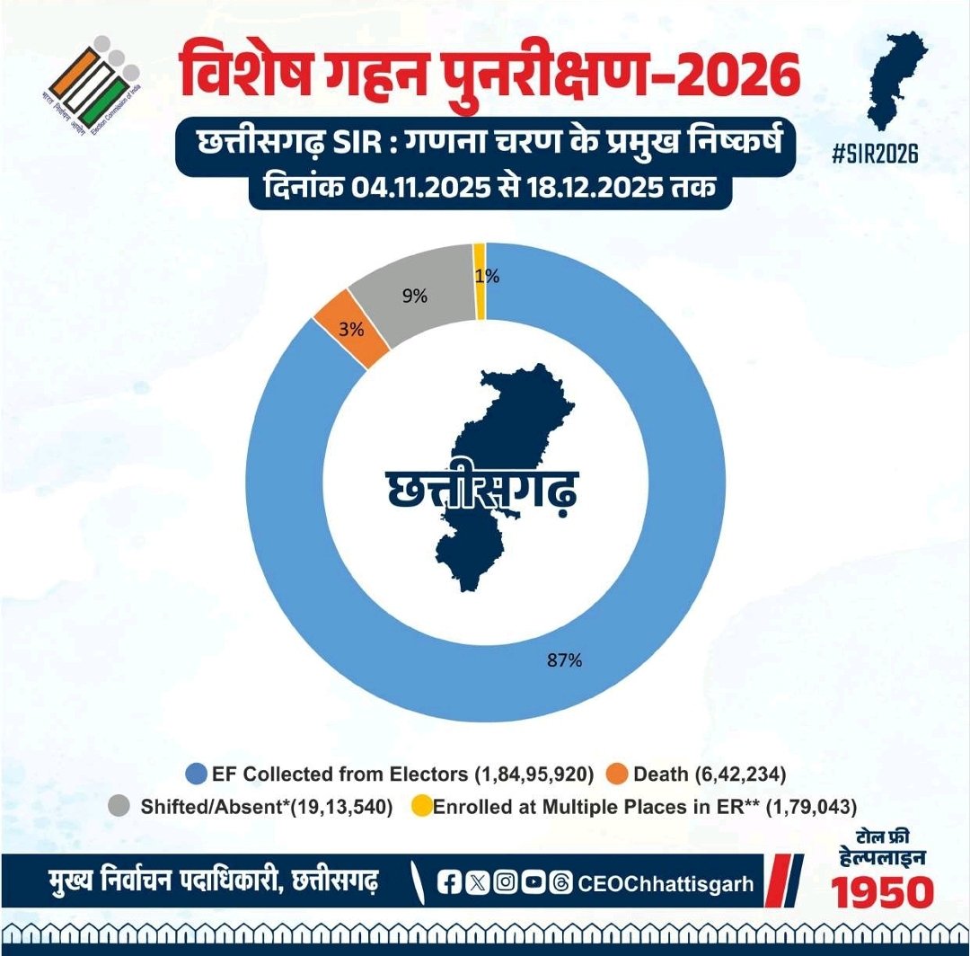 SIR-छत्तीसगढ़ की ड्राफ्ट वोटर लिस्ट जारी,27 लाख से अधिक वोटरों के नाम कटे,आपका नाम नहीं है तो करें यह कार्य