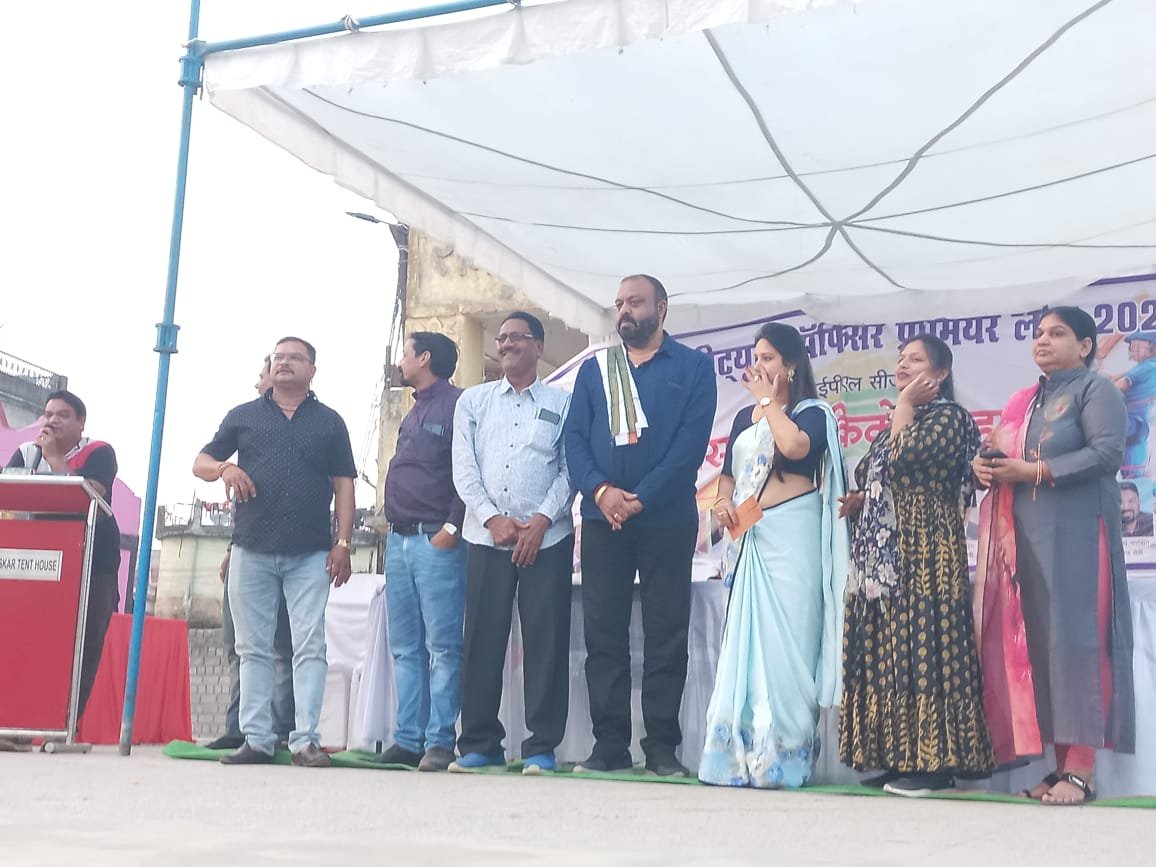 समापन समारोह में :-समाजसेवी कविता बेरीवाल कांग्रेसी नेता दीपक पांडे,अशरफ खान,महावीर अग्रवाल,शिबू मिश्रा उपस्थित रहे। विजेता और उपविजेता की ट्रॉफी यूनिवर्सल स्कूल के नन्हें संचालक गोल्डी गुप्ता ने प्रदान की वहीं अशरफ खान और दीपक पांडे ने ट्रैकसूट शिबू मिश्रा ने एक बैट और दुर्गेश शर्मा ने टी-शर्ट पुरस्कार स्वरूप दिया । साथ ही साथ कविता बेरिवाल ने ने दोनों ही टीमों को क्रमशः ₹1000 नकद राशि प्रदांन की।साथ ही अंकुश को दीपक पांडेय और अशरफ खान ने ₹1000 का नगद पुरस्कार से सम्मानित किया ।