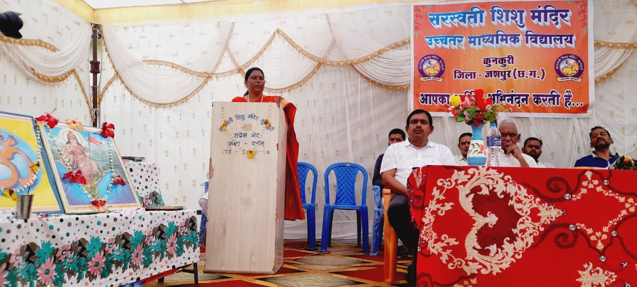 सांसद गोमती साय ने अपने उद्बोधन मे बताया कि वो इस संस्था से व्यक्तिगत रूप से नही जुडी है लेकिन इनके द्वारा भारतीय संस्कृति को आगे ले जाने वाले प्रयासों को बाखूभी जानती है। इन्होंने सभी अभिभावकों से कहा कि सभी अपने बच्चों को इस संस्था मे भेंजे। क्योंकि इस संस्था में पाठ्यक्रम शिक्षा के साथ संस्कारों एवं संस्कृति की भी शिक्षा दी जाती है। इसीलिए वे भी स्वयं के परिवार के 4 बच्चों को अंग्रेजी माध्यम स्कूल से निकाल कर सरस्वती शिशु मन्दिर मे पढ़ाने की बात कही।